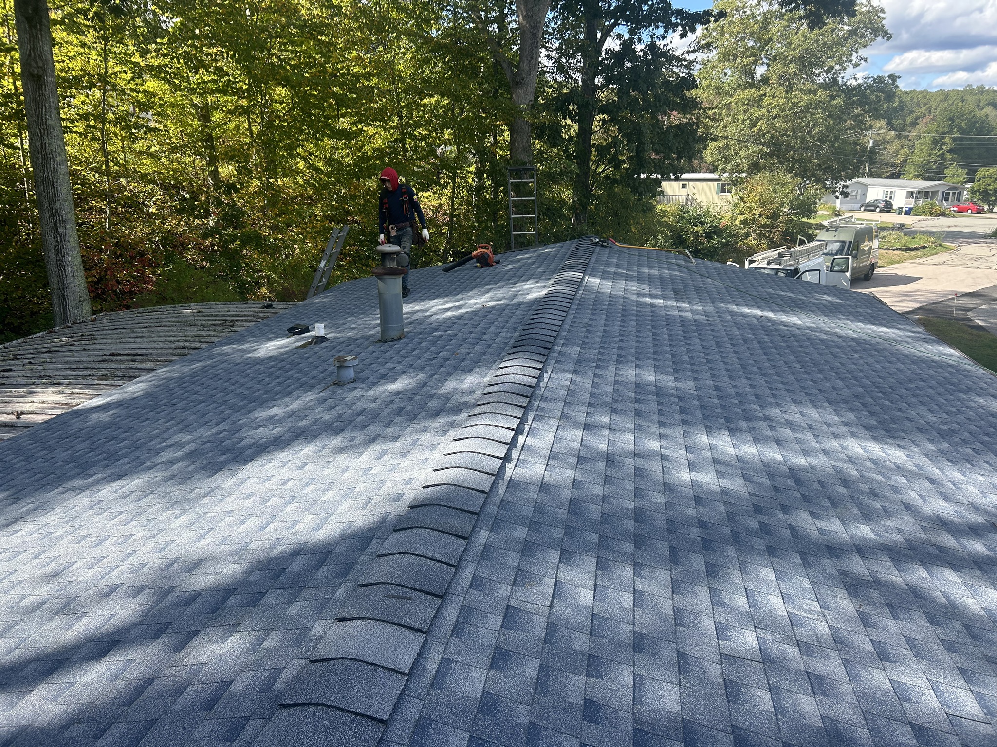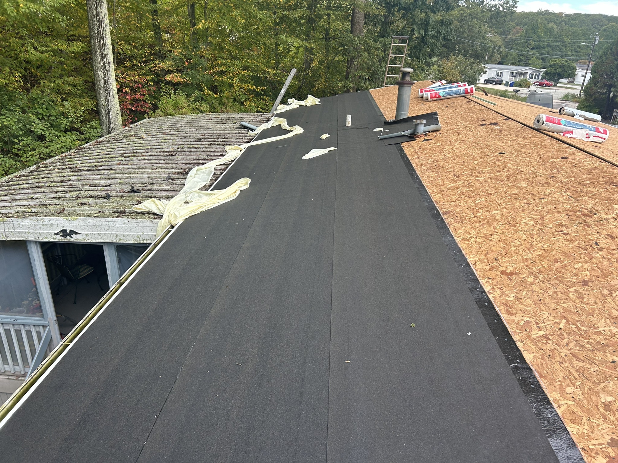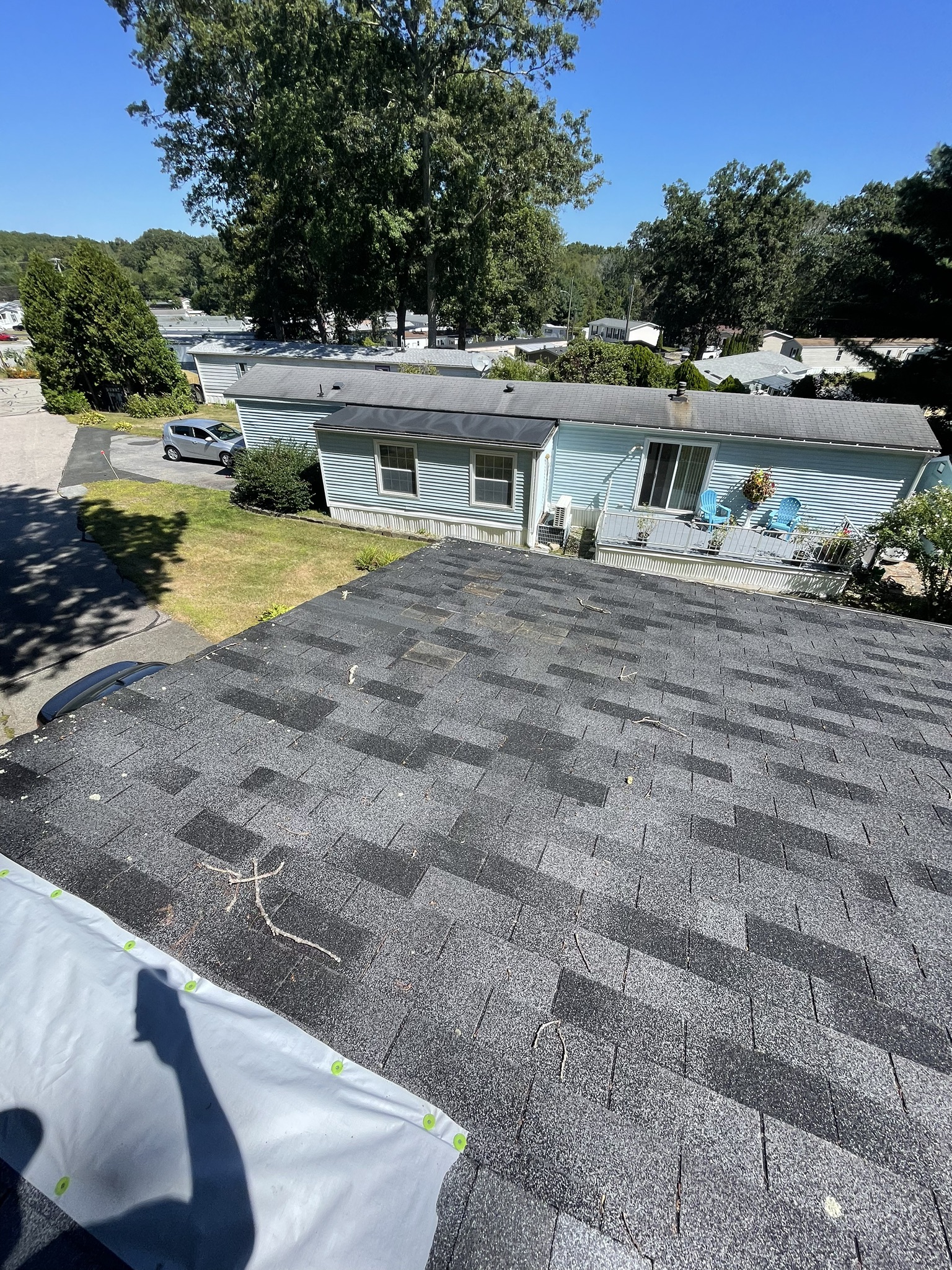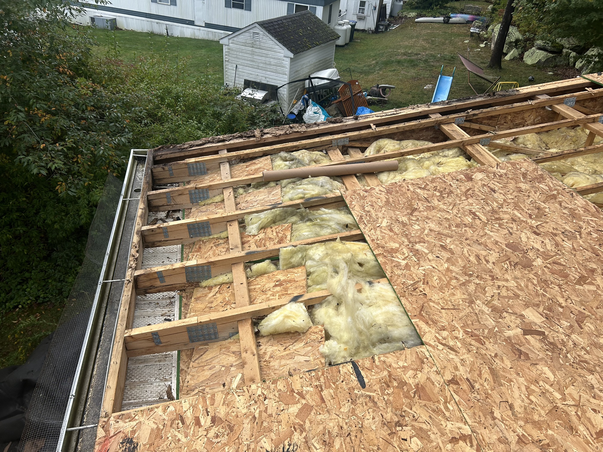 Before and after of our exterior services project featuring shed reroofing, roof replacement, and minor siding repairs — completed by Pawcatuck Roofing Co. to restore protection and enhance curb appeal. Call us at (860) 599-1024 (CT) | (401) 315-5011 (RI) or contact us online to get your free estimate today!