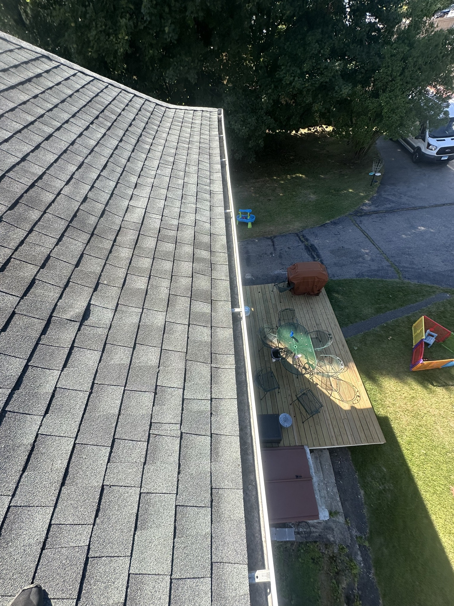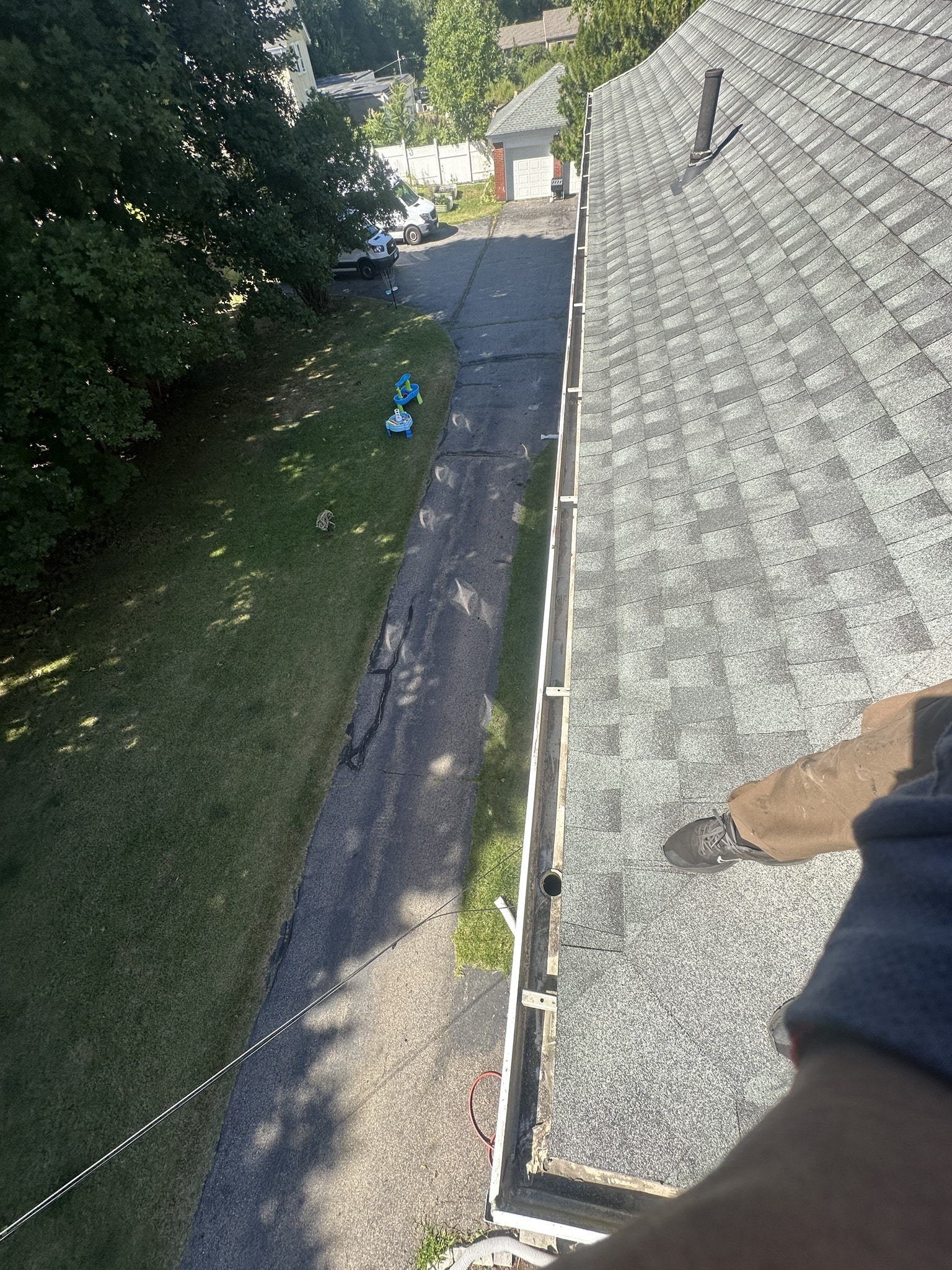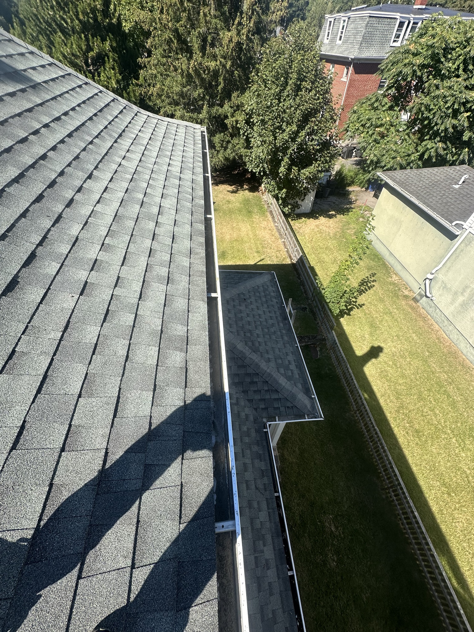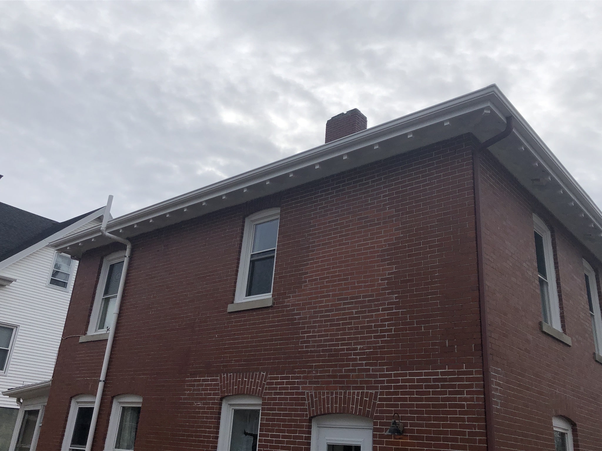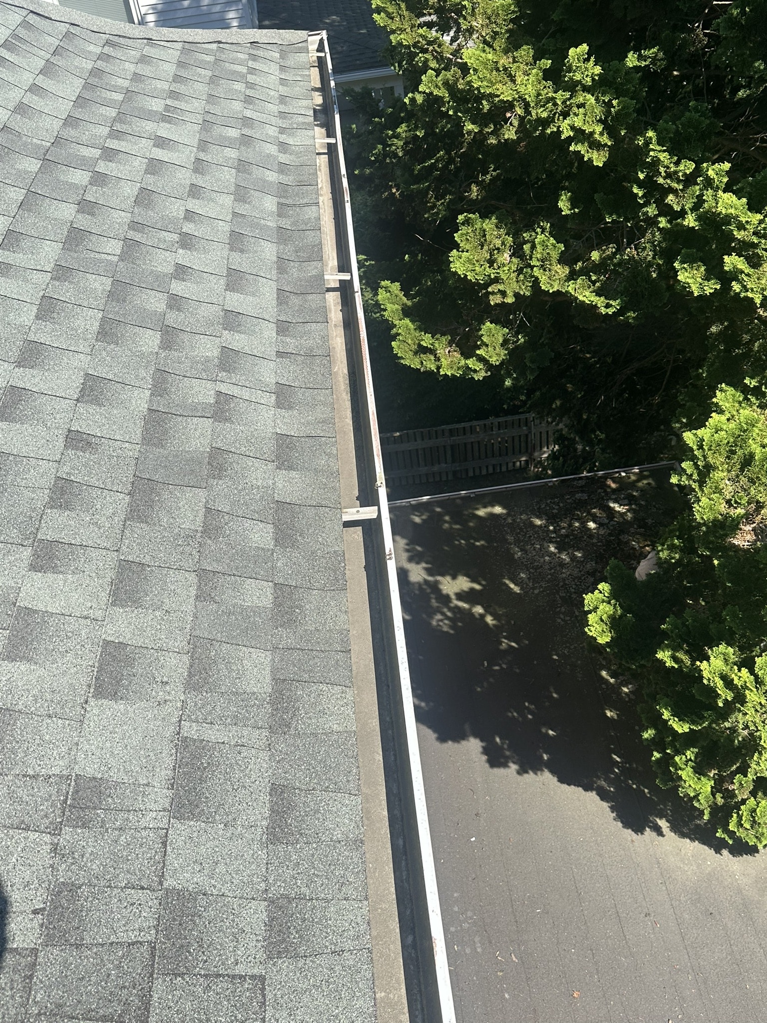 Before and after photos of a gutter installation, cleaning, and guard protection project completed by Pawcatuck Roofing Co. right here in Westerly, RI. The team installed seamless gutters and guards to keep things running smoothly year-round.