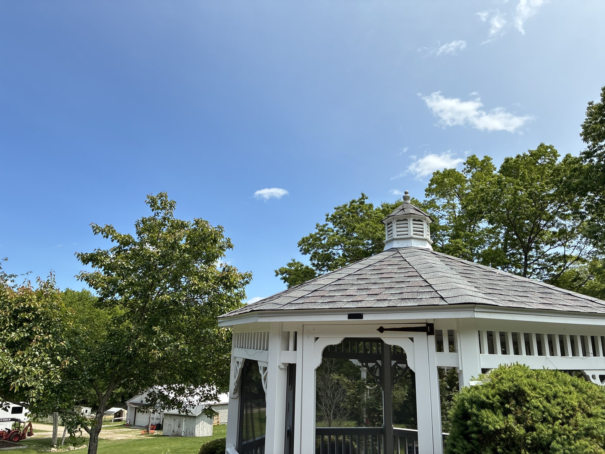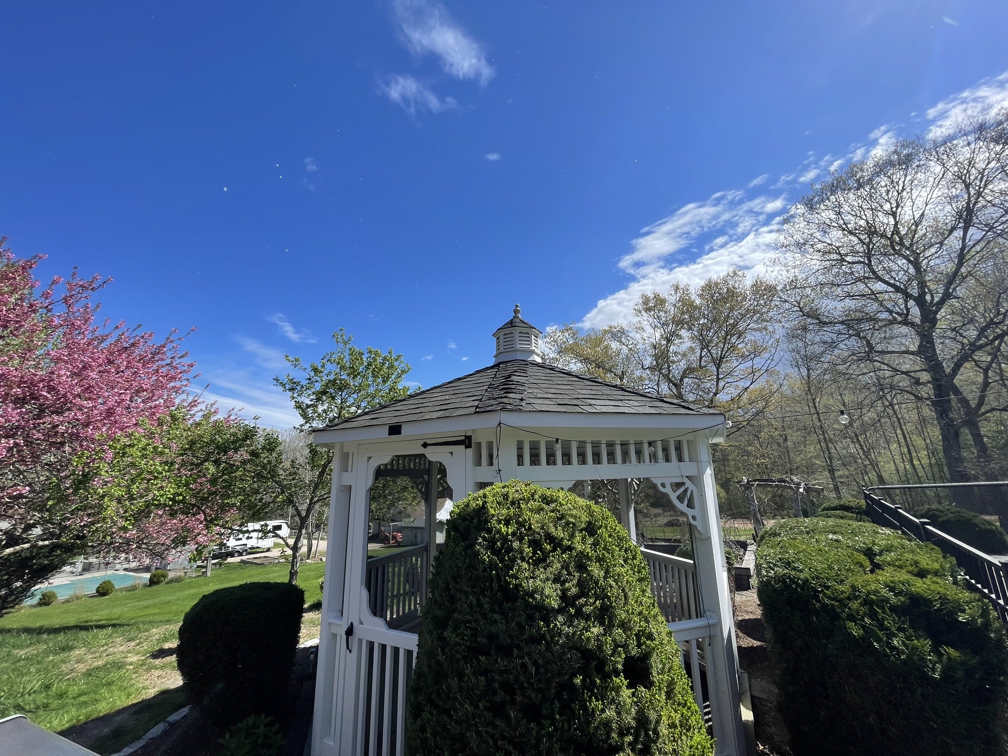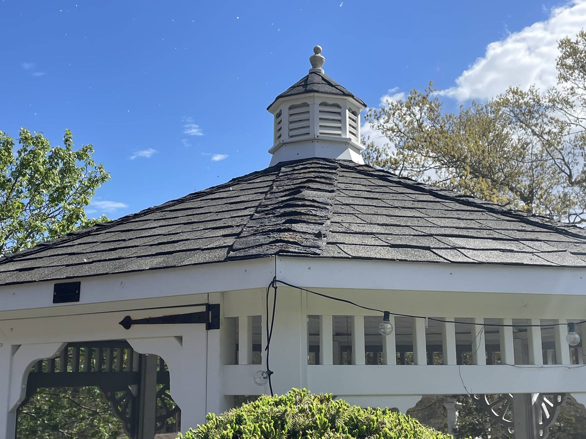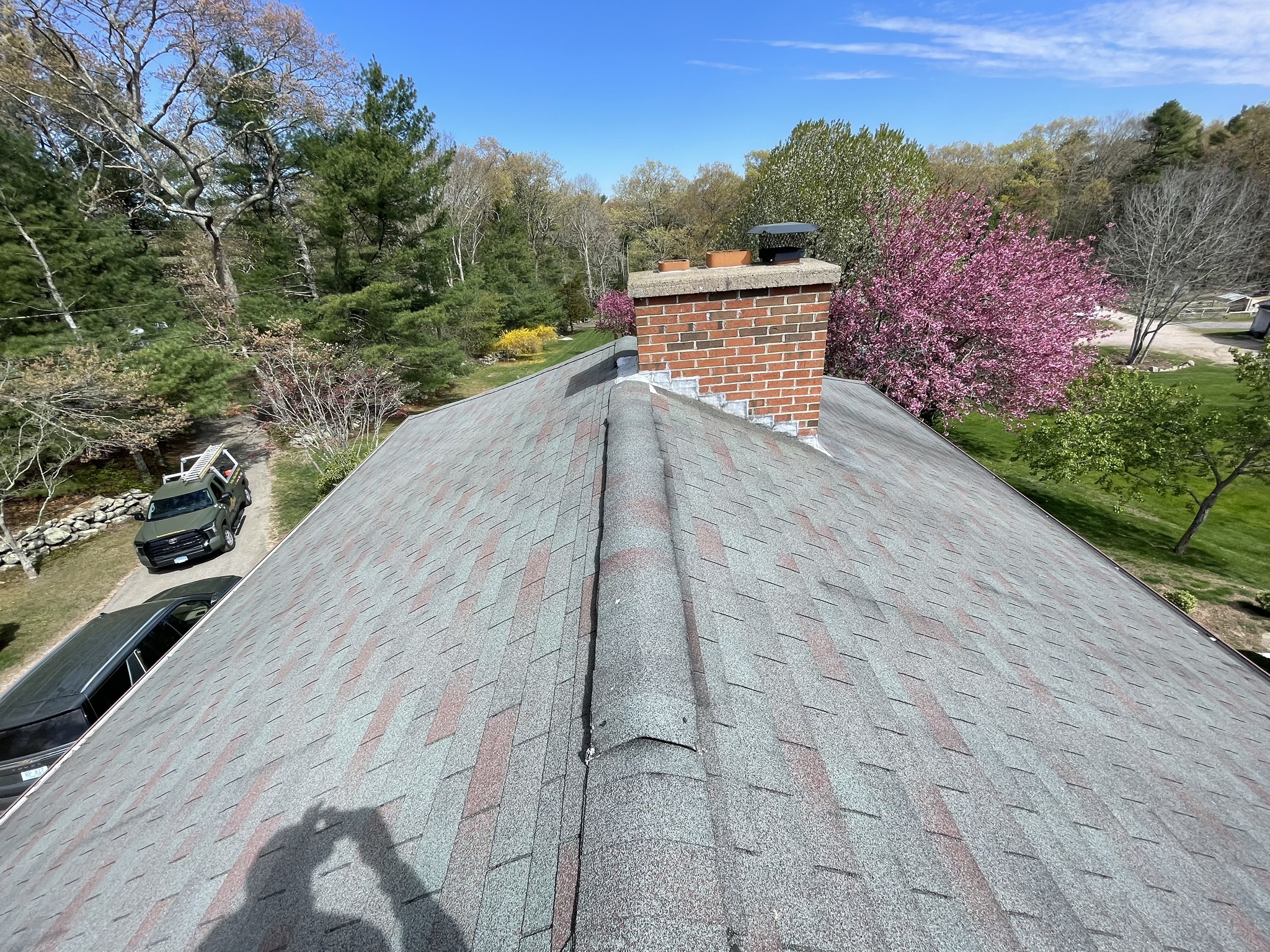 Before and after photos of a reroofing, gutter cleaning, and leaf guard installation project completed by Pawcatuck Roofing Co. in Westerly, RI. The team installed a new roof, cleaned existing gutters, and added leaf guards to improve drainage efficiency and protect the home from debris buildup.