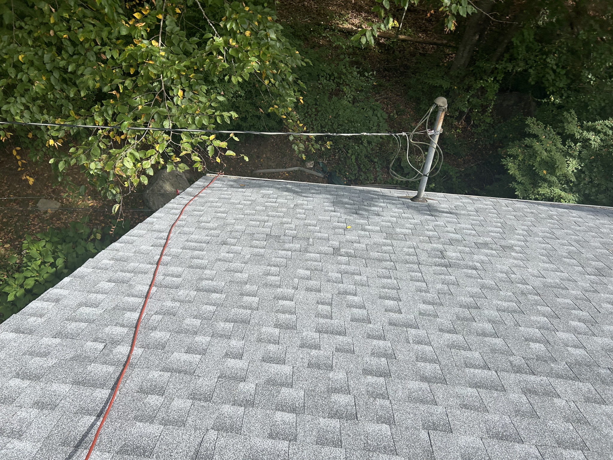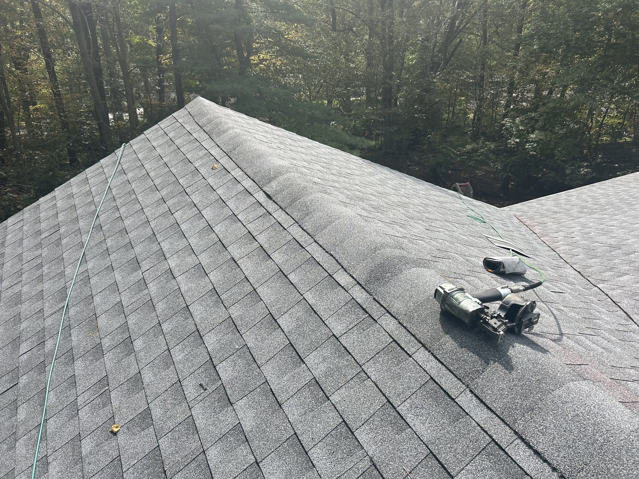 Before and after of our residential roof replacement in Ledyard, CT — expertly completed by Pawcatuck Roofing Company for enhanced durability, protection, and curb appeal. Contact us today at 860-599-1024 (CT) or 401-315-5011 (RI).