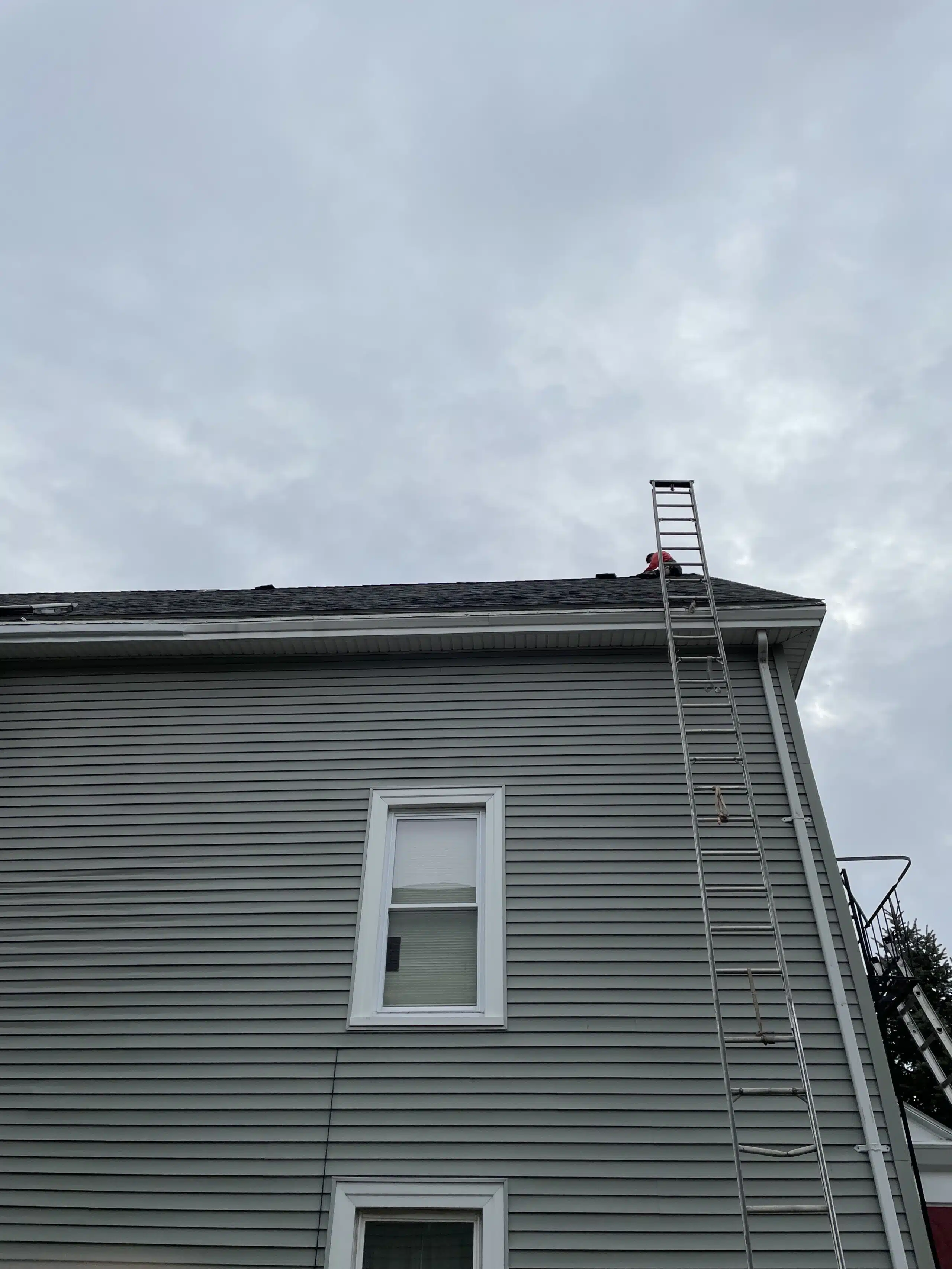 Before and after photos of a residential roof replacement project completed by Pawcatuck Roofing Co. in Pawtucket, RI. The team removed the old roofing materials and installed a new, durable roof to enhance the home’s protection, energy efficiency, and curb appeal.