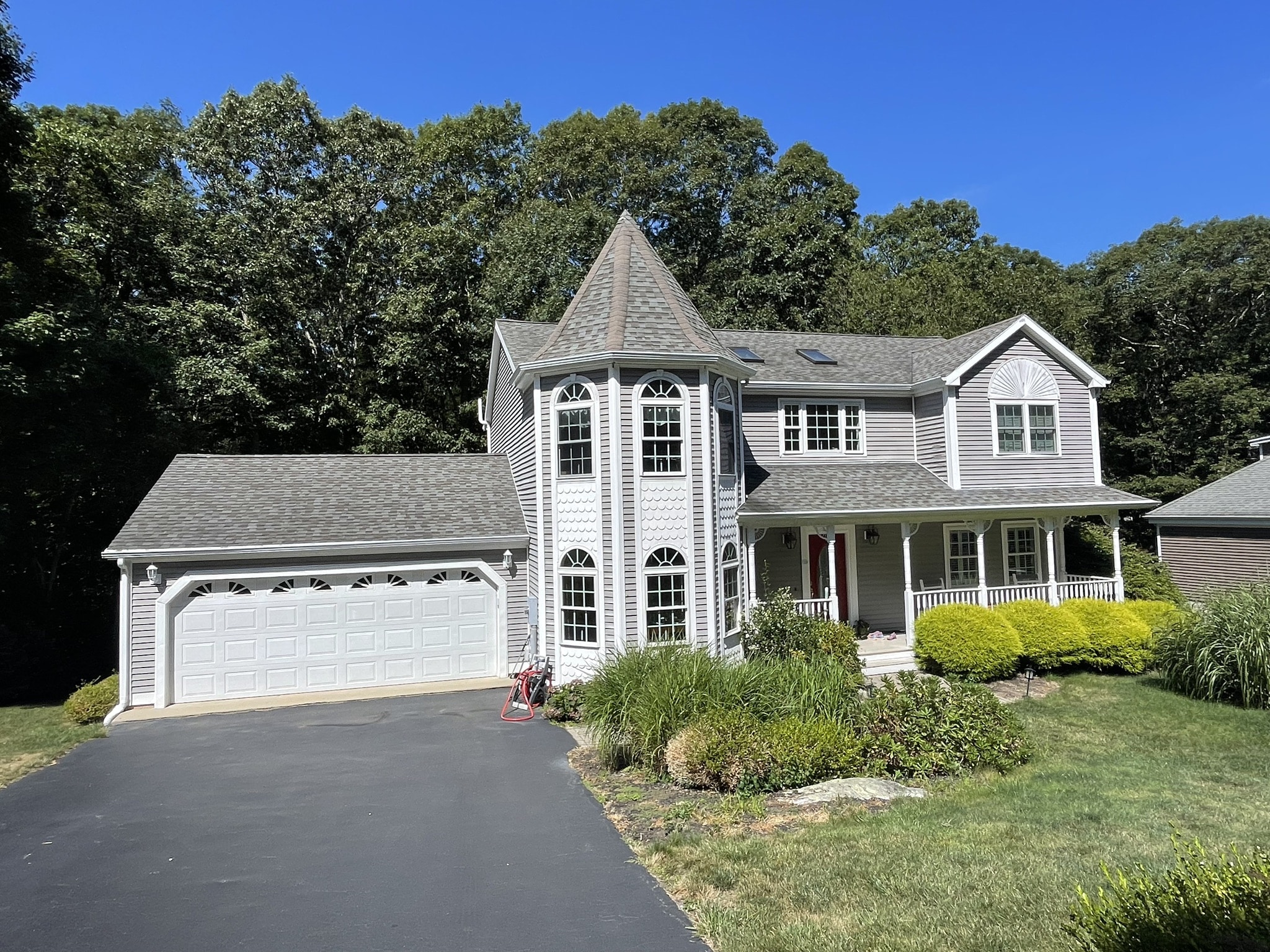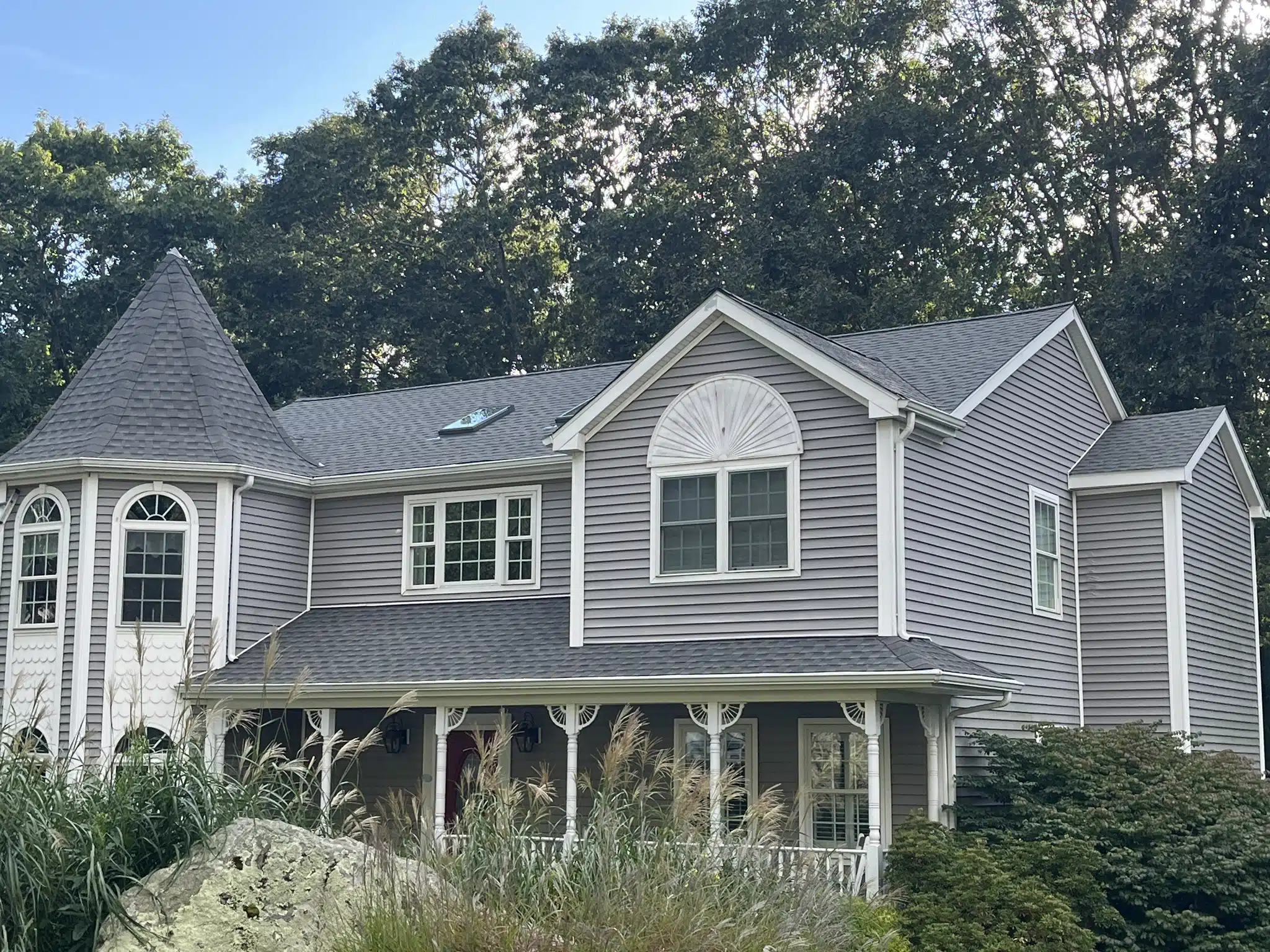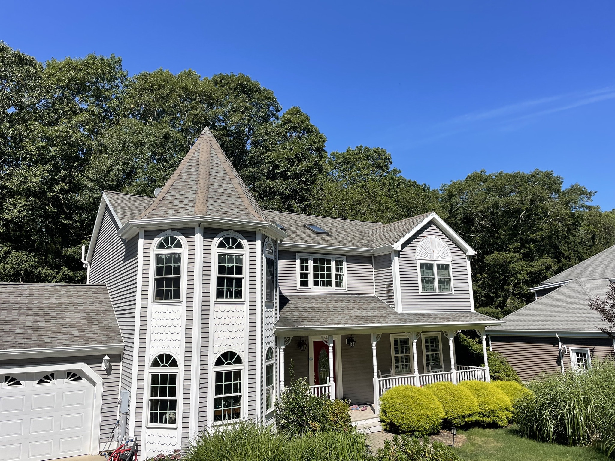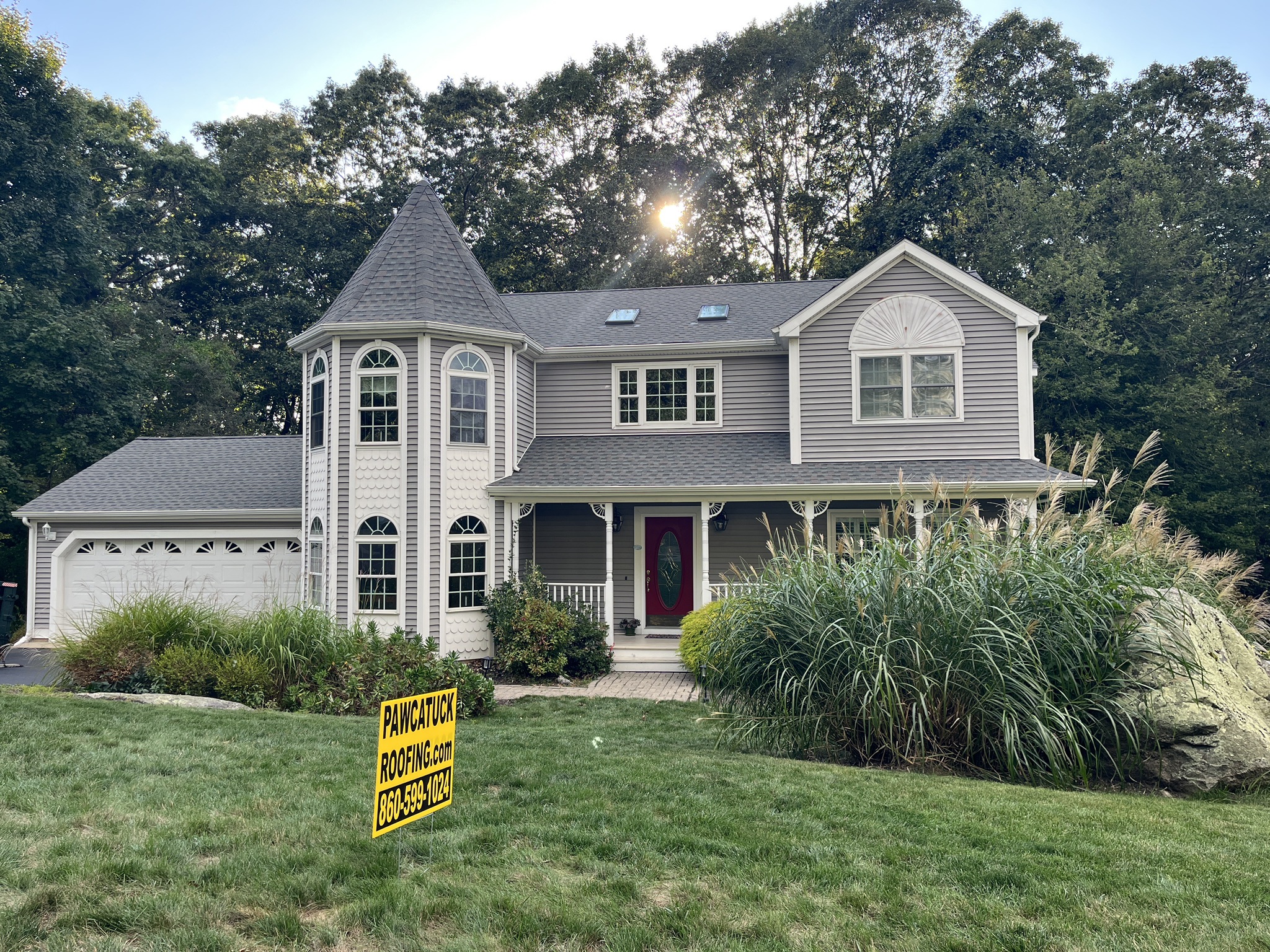 Before and after: A full residential roof replacement by Pawcatuck Roofing Co. in Stonington, CT.