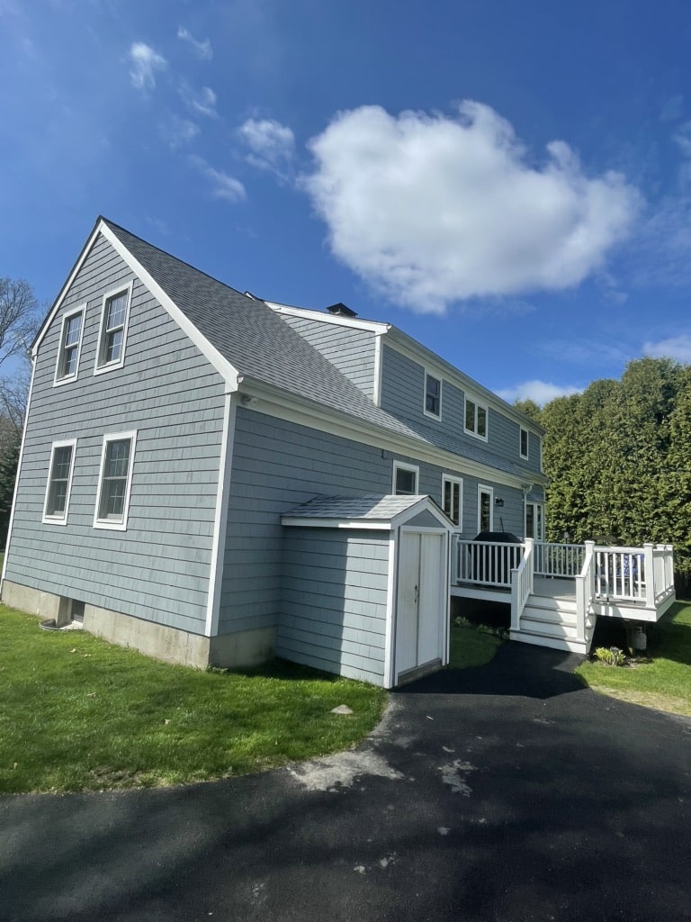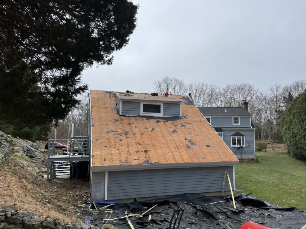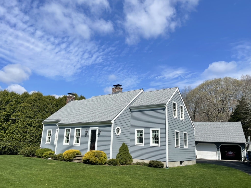 Pawcatuck Roofing Co completed a roof replacement in Hopkinton, RI, featuring durable and attractive Fox Hollow Gray asphalt shingles. This upgrade provides dependable, long-lasting protection while giving the home a fresh, modern appearance. Take a look at the before-and-after photos to see the quality workmanship of this professional roofing installation.