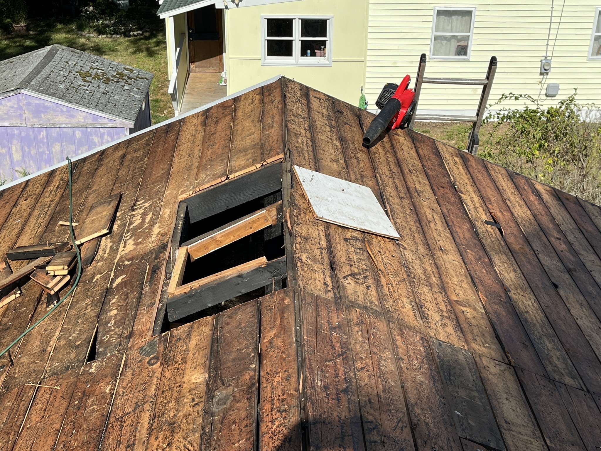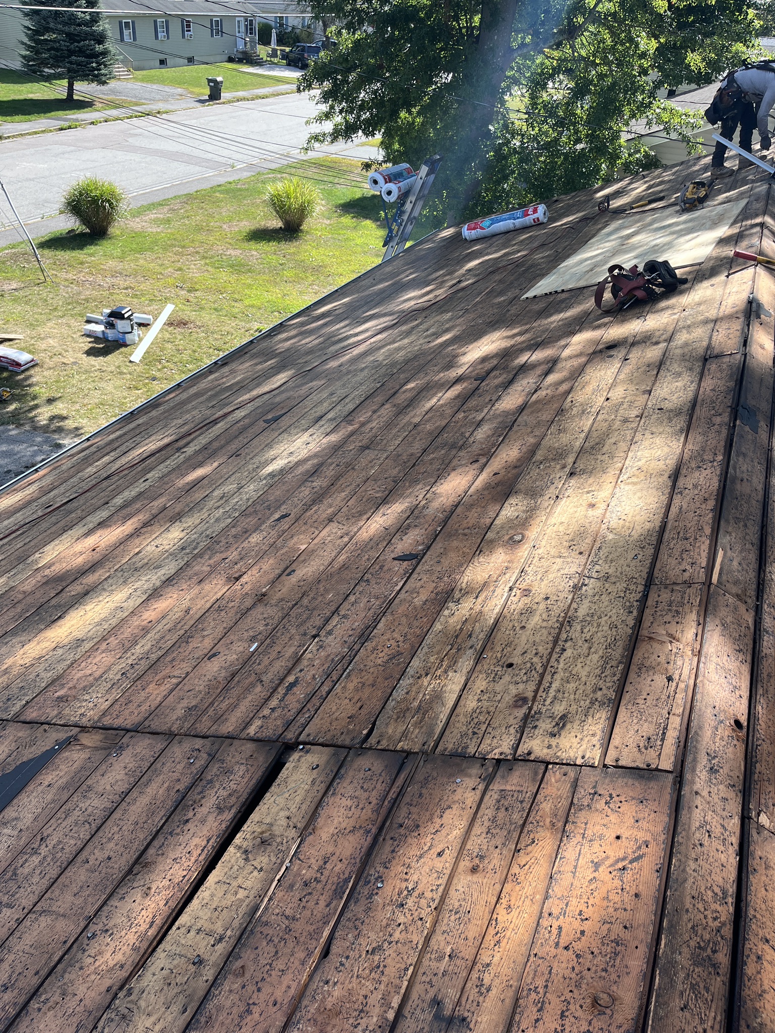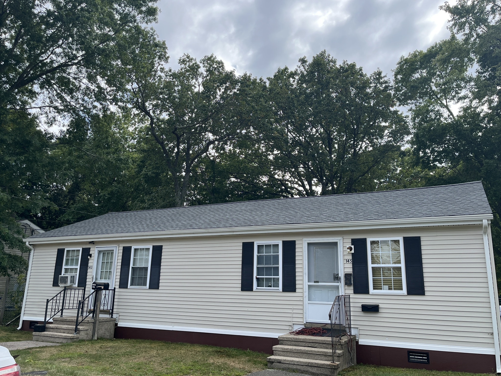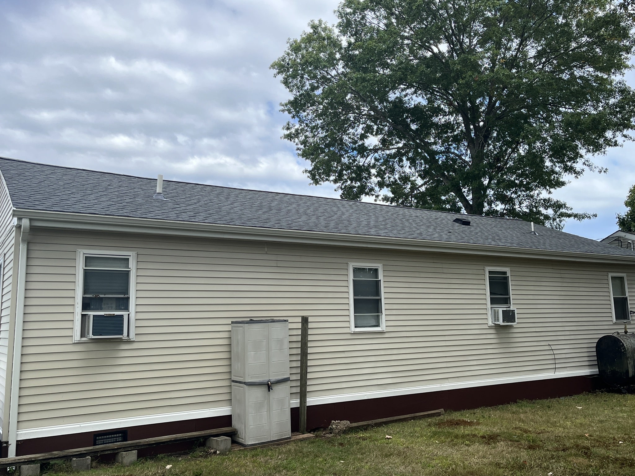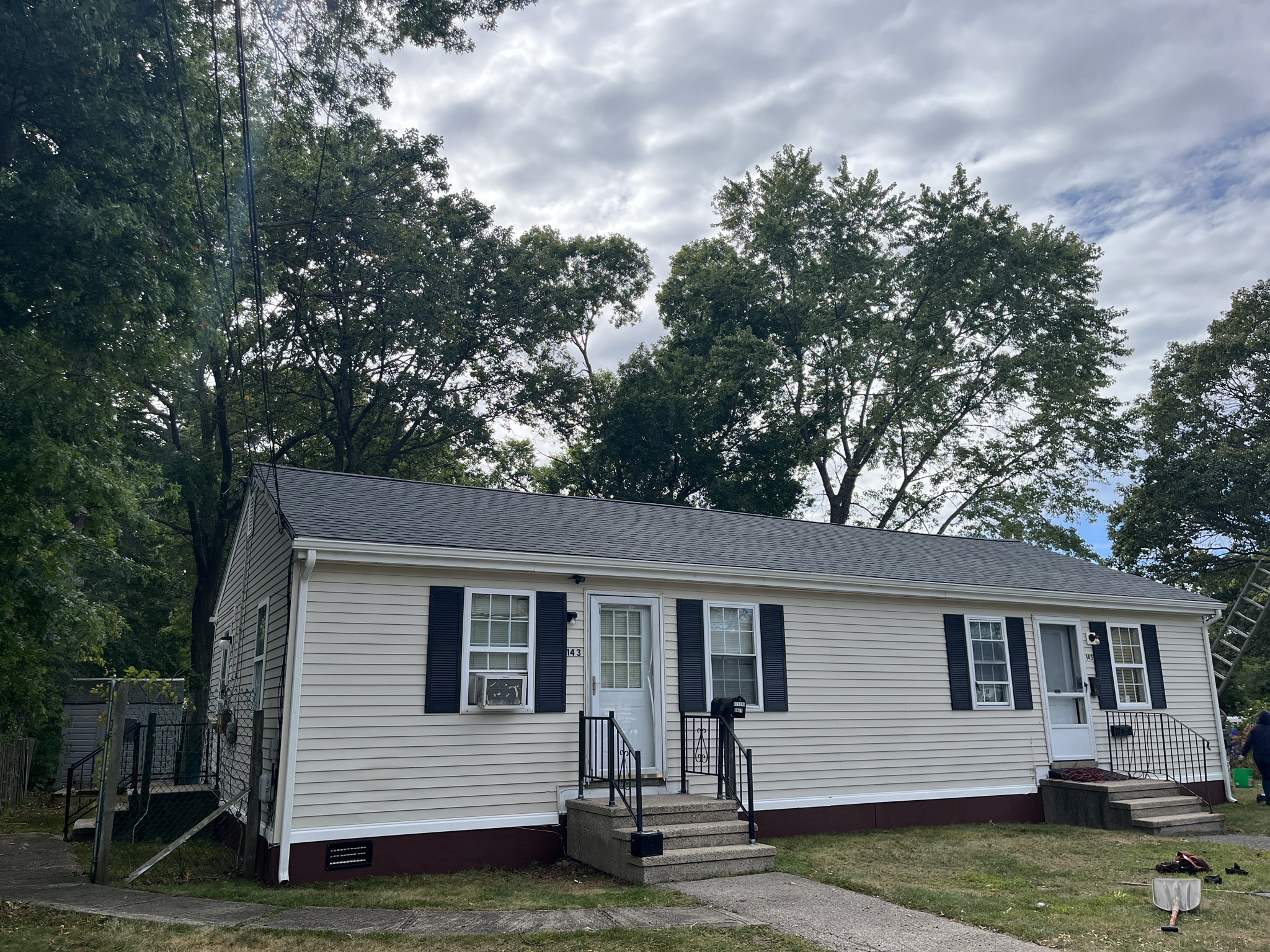 Pawcatuck Roofing Co. completed a residential roof replacement and shingle installation in Groton, CT — showing a great before and after transformation.