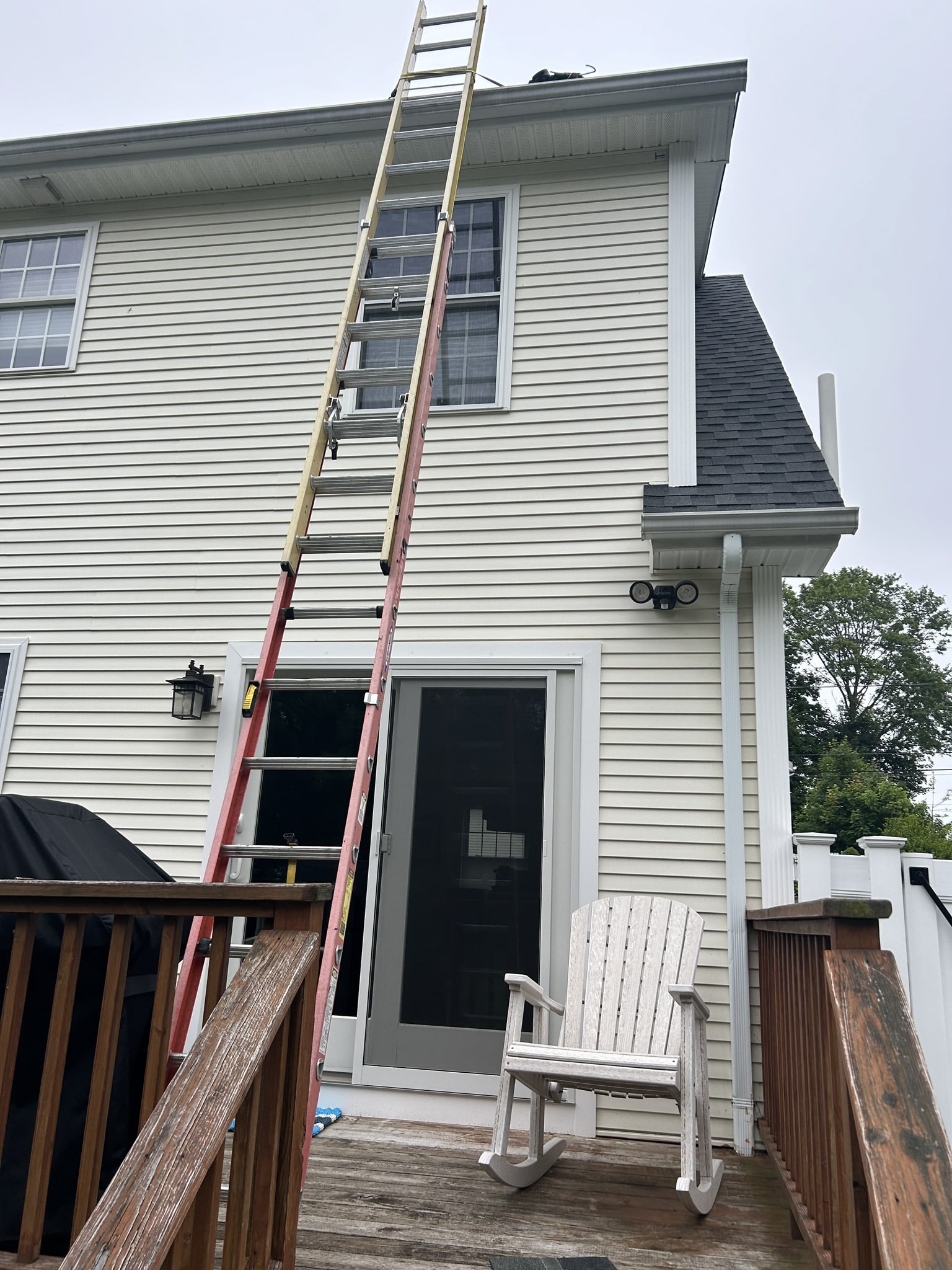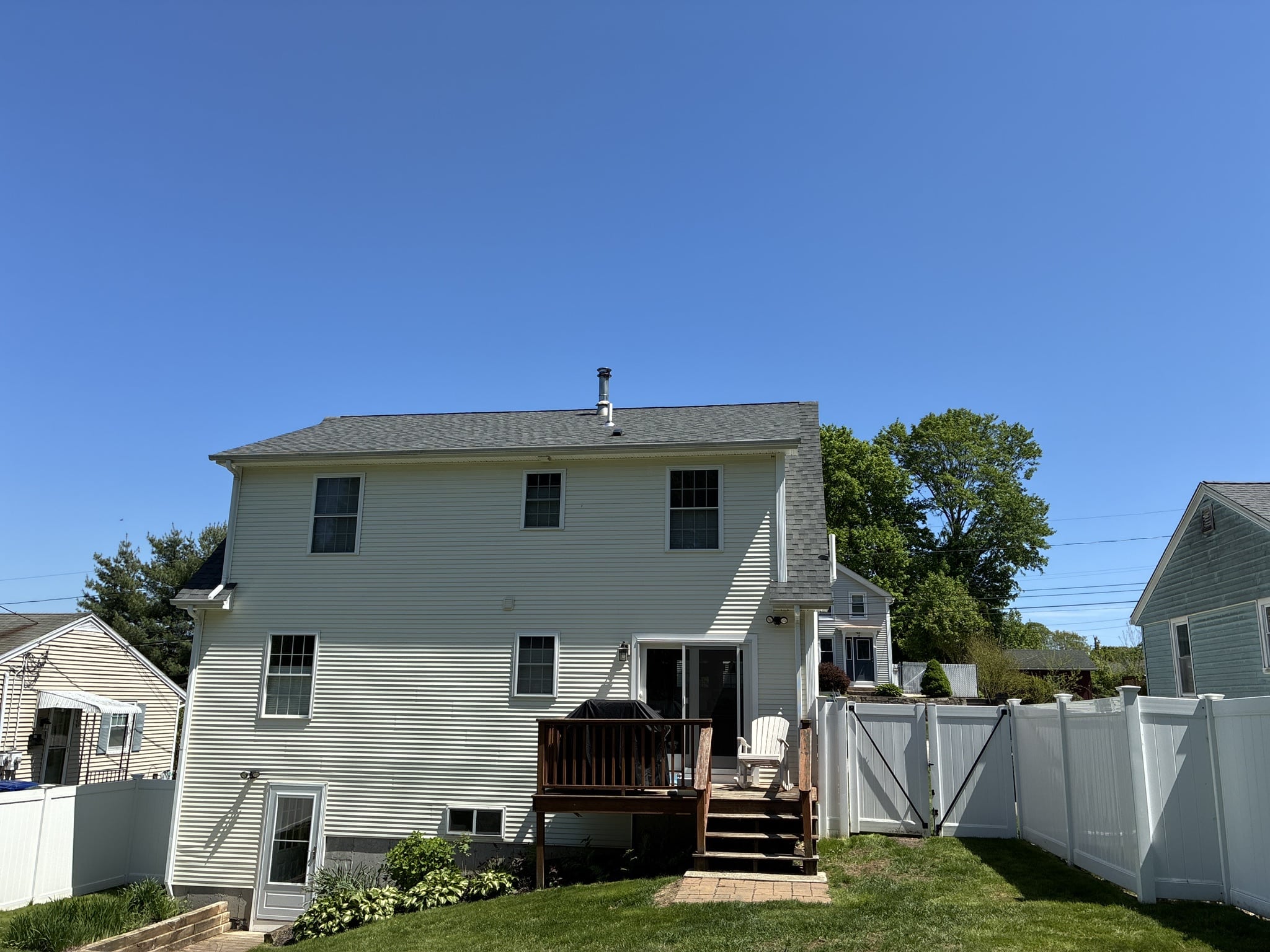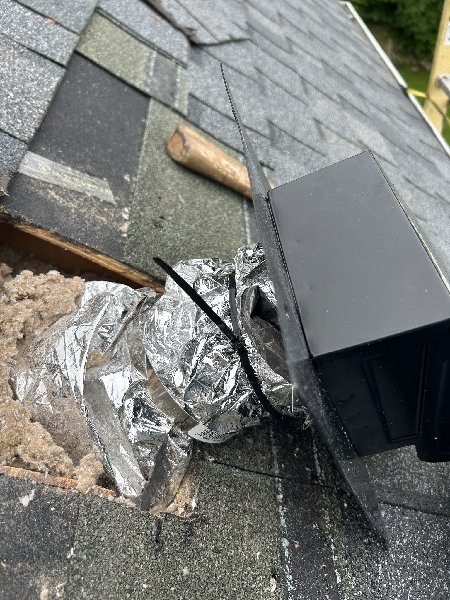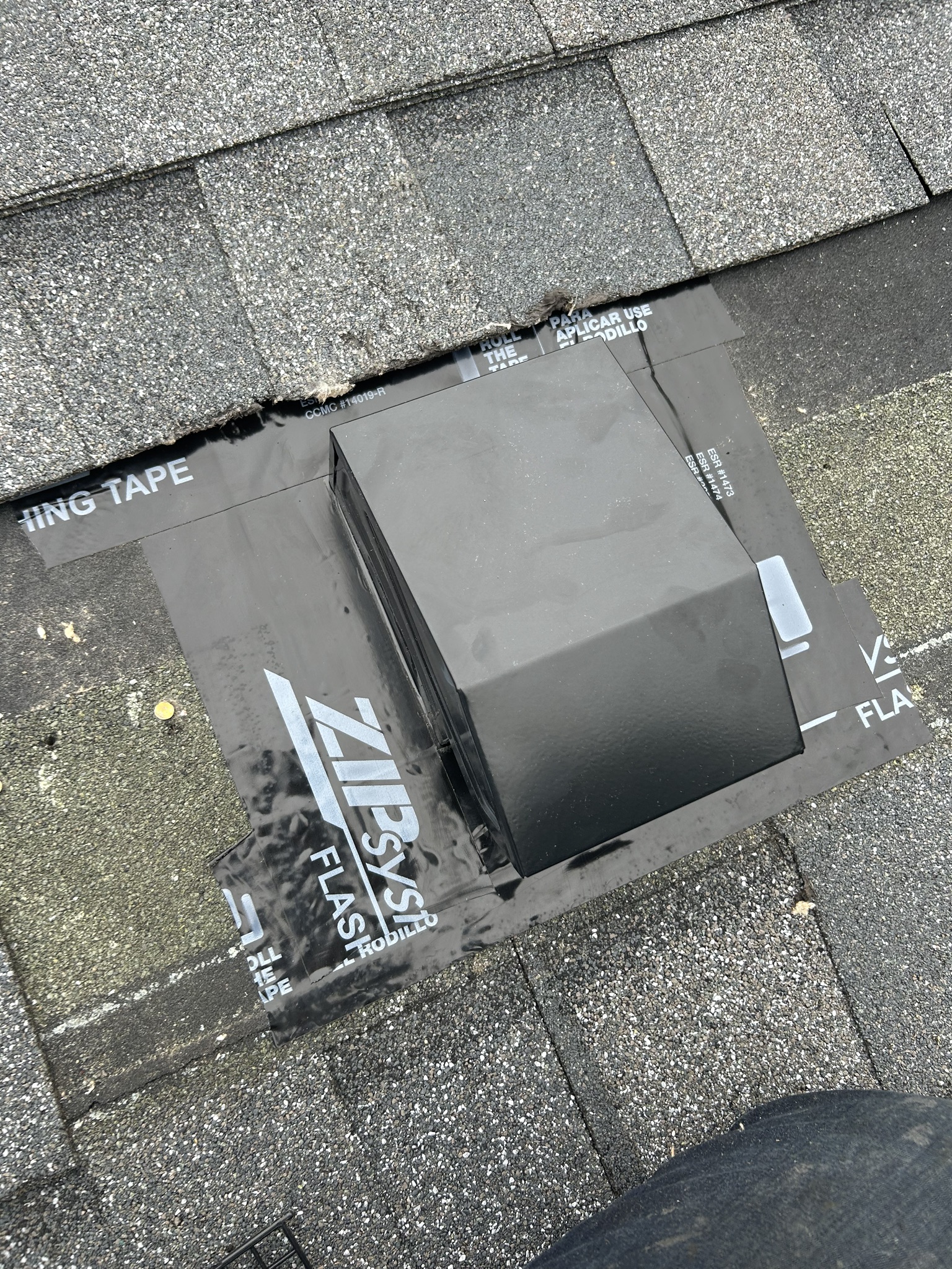 Before and after photos of a roof vent replacement and repair project completed by Pawcatuck Roofing Co. in Stonington, CT. The team replaced damaged roof vents and repaired surrounding areas to improve attic ventilation and ensure better roof performance and weather protection.
