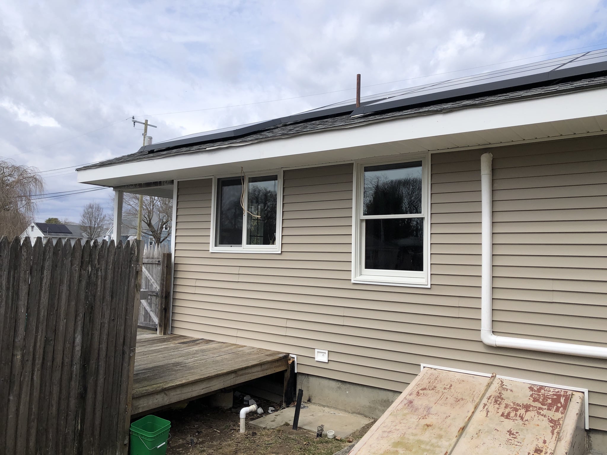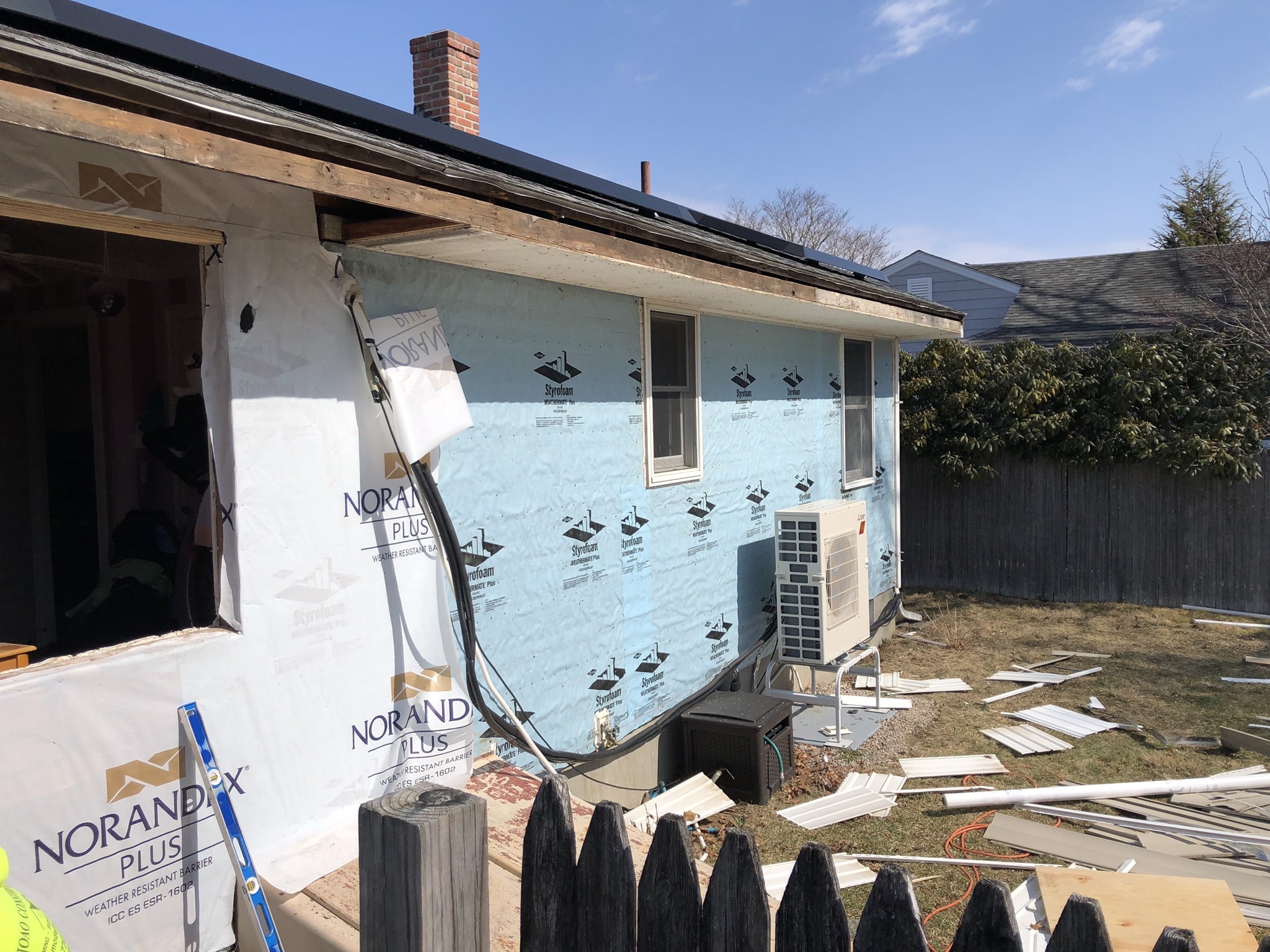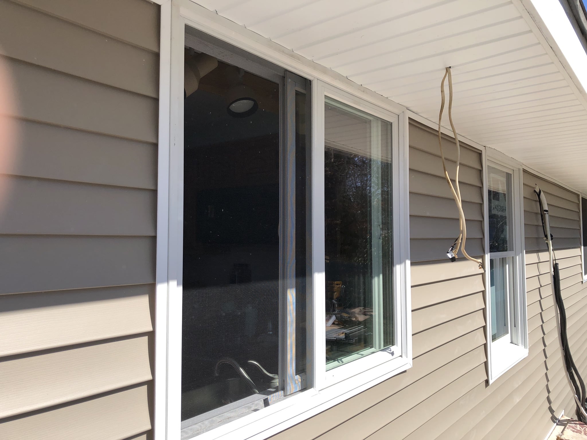 Pawcatuck Roofing Co. completed a siding and window installation in Stonington, CT, featuring CertainTeed MainStreet Vinyl Siding in Natural Clay and Andersen double-hung and sliding glass windows.