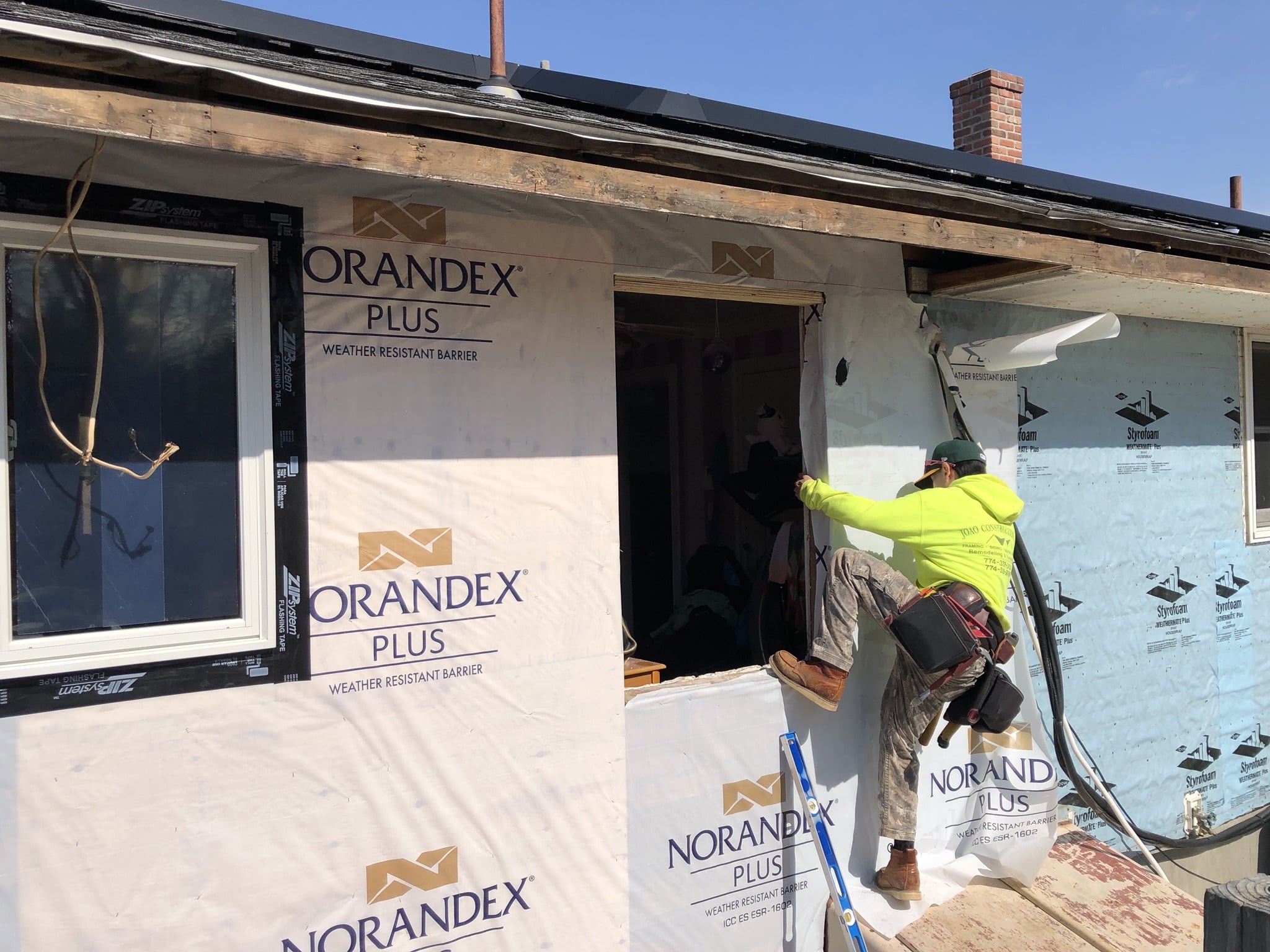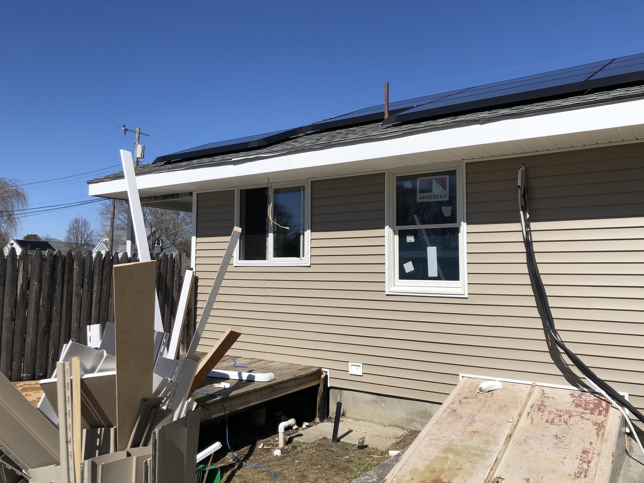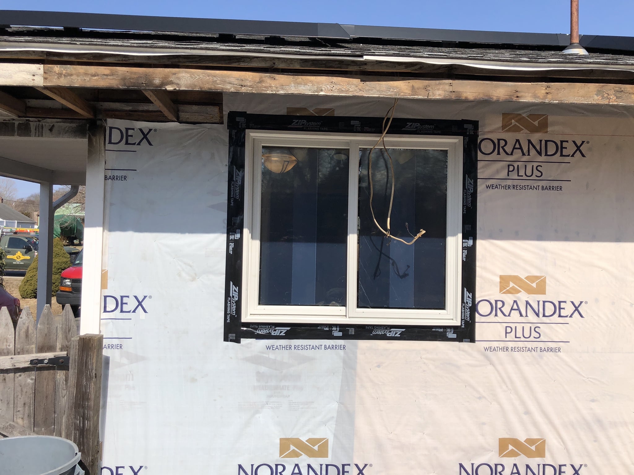 Pawcatuck Roofing Co. completed a siding and window installation in Stonington, CT, featuring CertainTeed MainStreet Vinyl Siding in Natural Clay and Andersen double-hung and sliding glass windows.